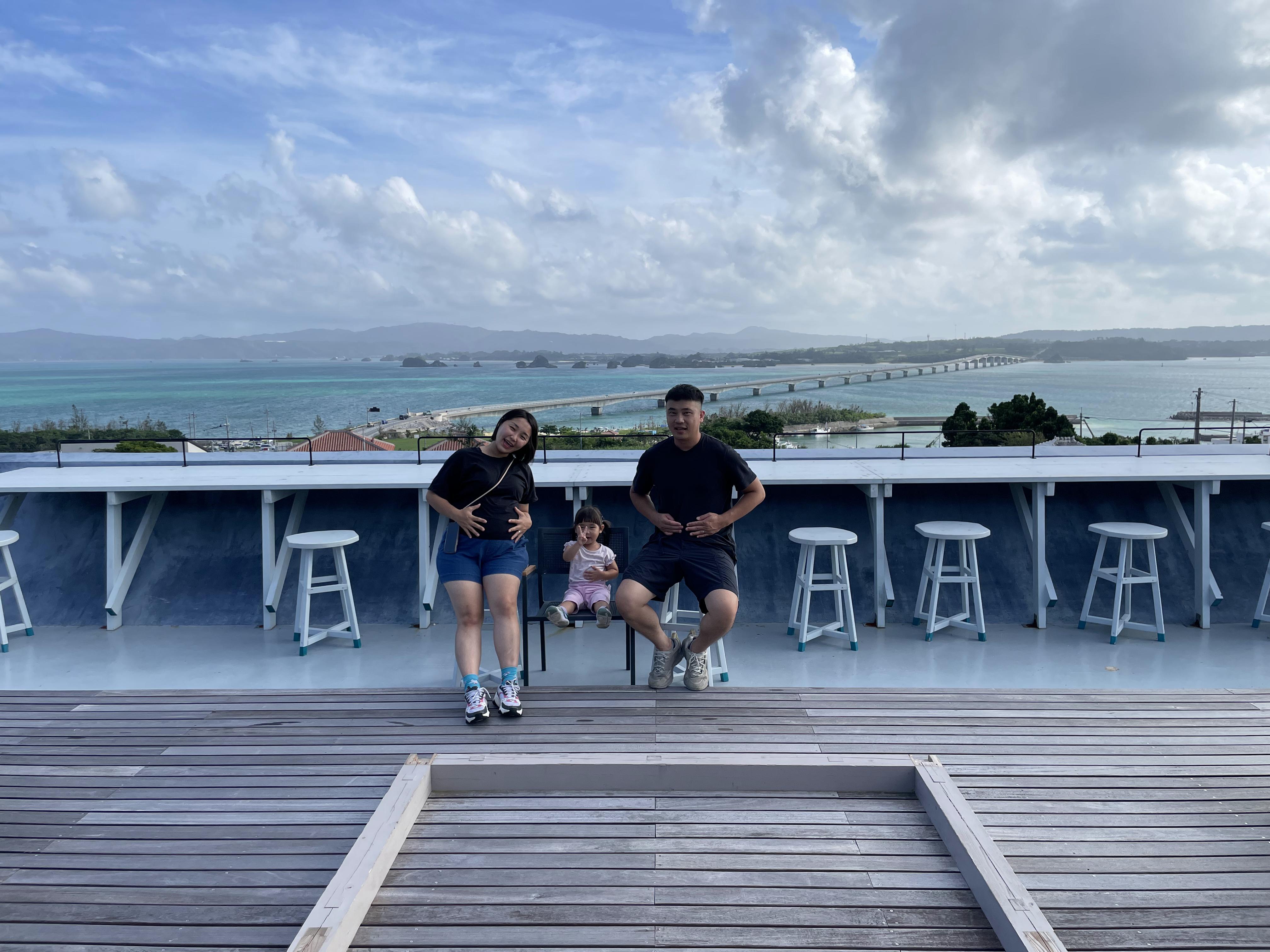 結束海生館後,前往海人食堂吃午餐,跩媽忘記當天公休,路上爸爸太累就停在路上超市小咪一下,補充提神飲料和車上吃壽司當午餐,再直驅古宇利島的L LOTA海景咖啡廳,這次去點了甜點套餐,爸爸喝冰拿鐵&巧克力水果蛋糕,我喝熱的黑糖肉桂拿鐵&提拉米蘇,這家甜點真的很不錯,品嚐完當然要到2樓去拍筆直的古宇利大橋拍景,藍綠色的大海搭上綿延在上方的橋路,真的好心曠神怡,心情都美好起來。